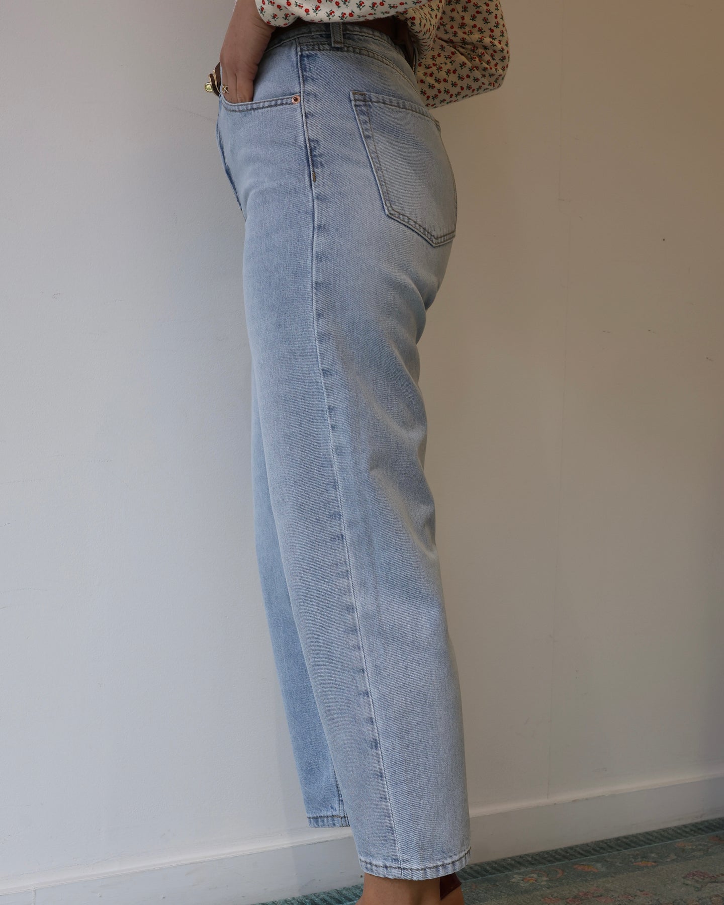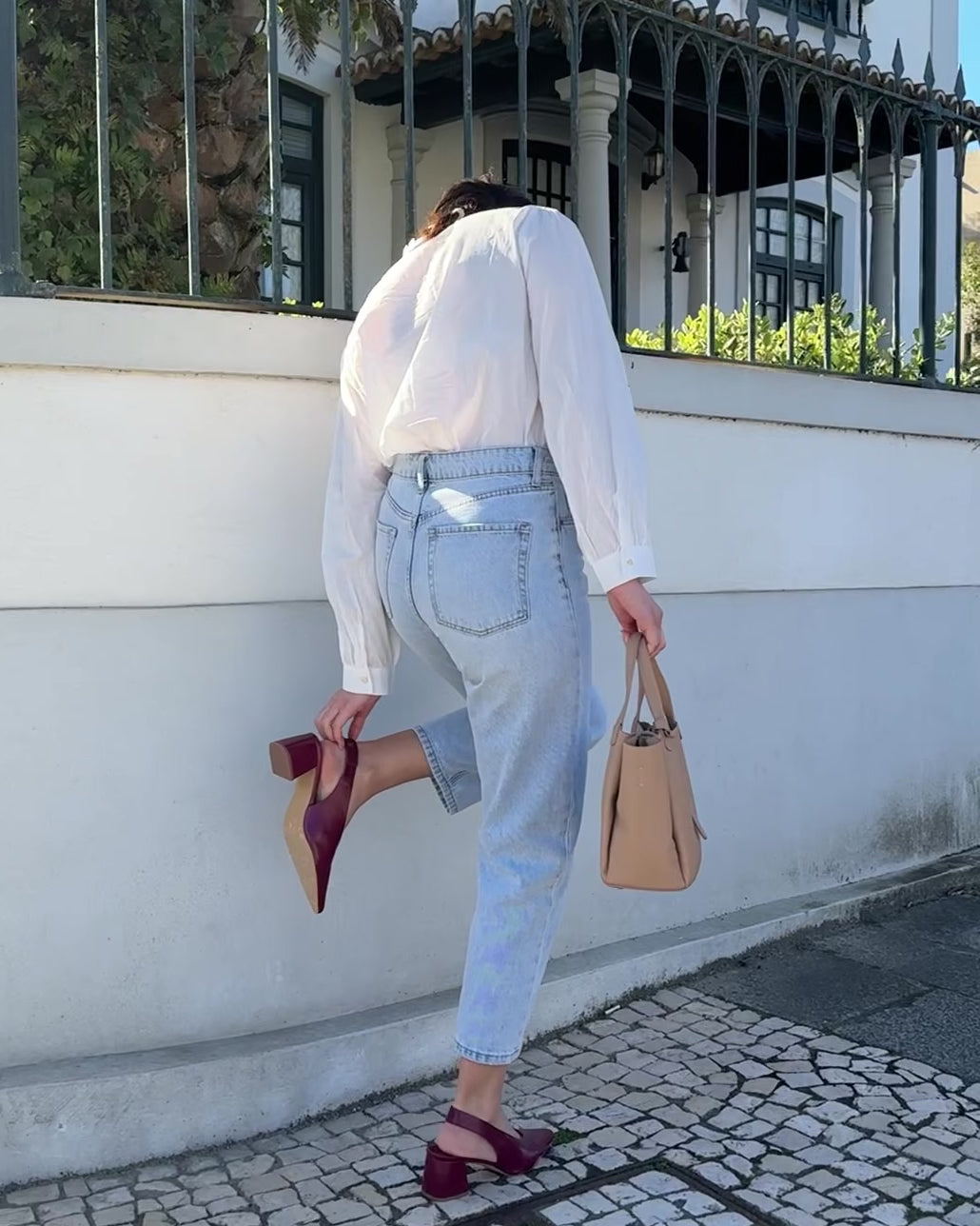 Jeans em algodão, modelo Mom Fit com cintura média. Coleção Primavera 2026.