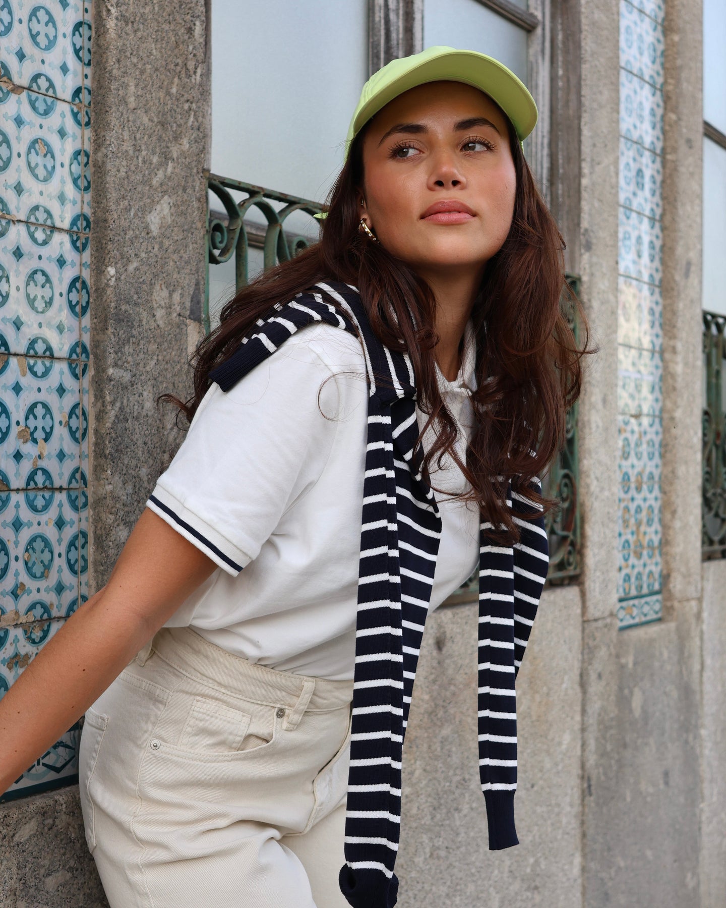 Polo branco com 2 botões. Coleção Primavera 2026.