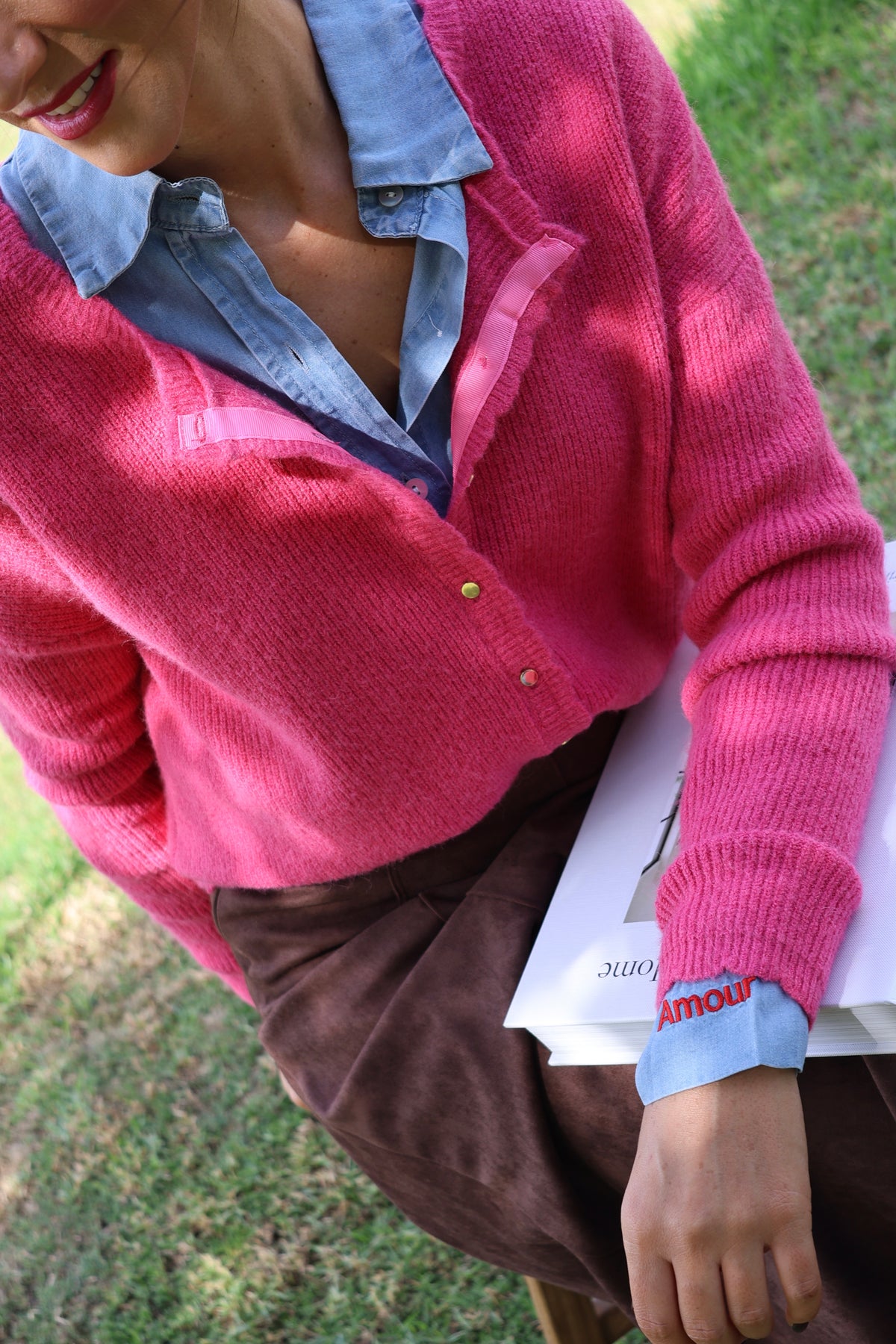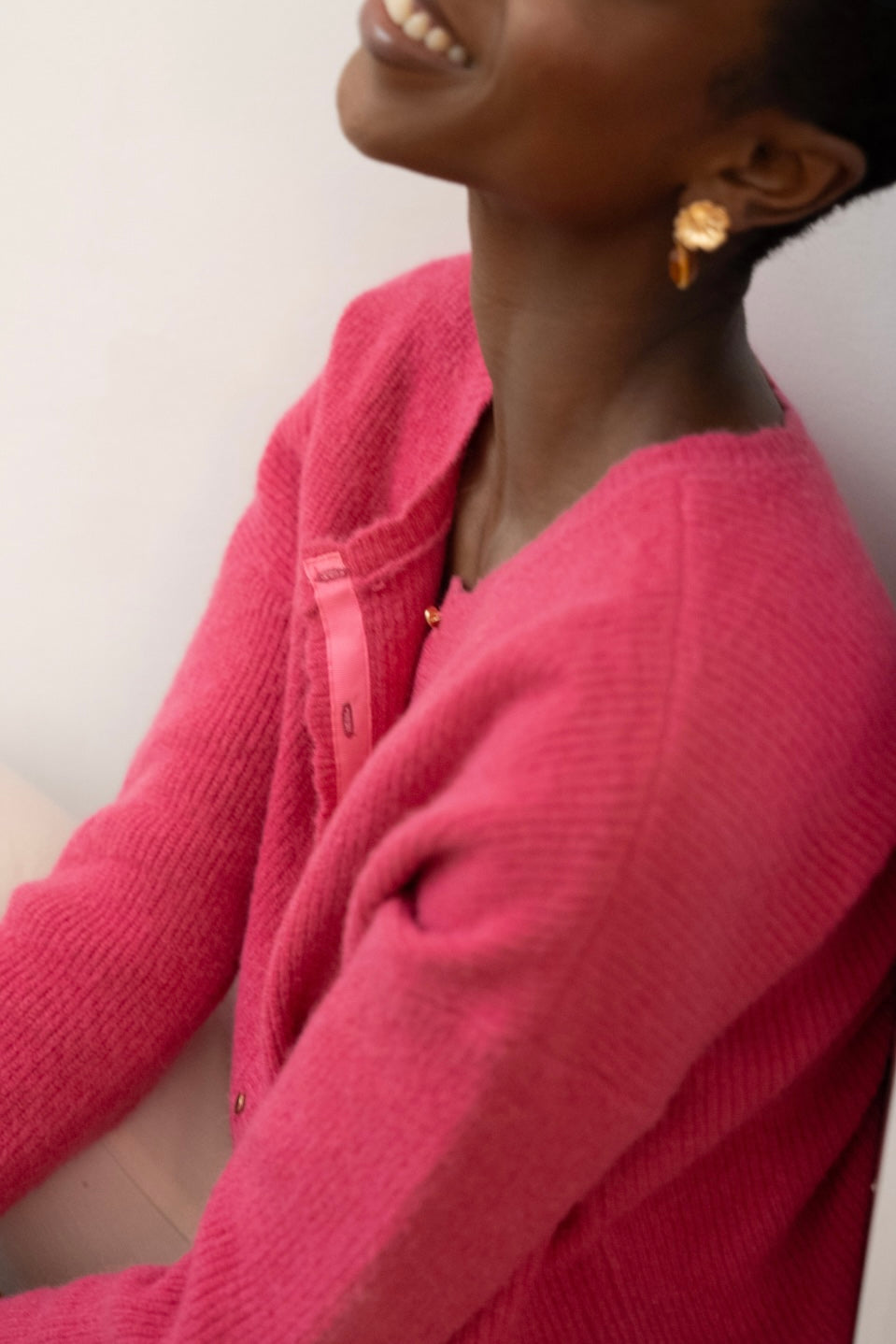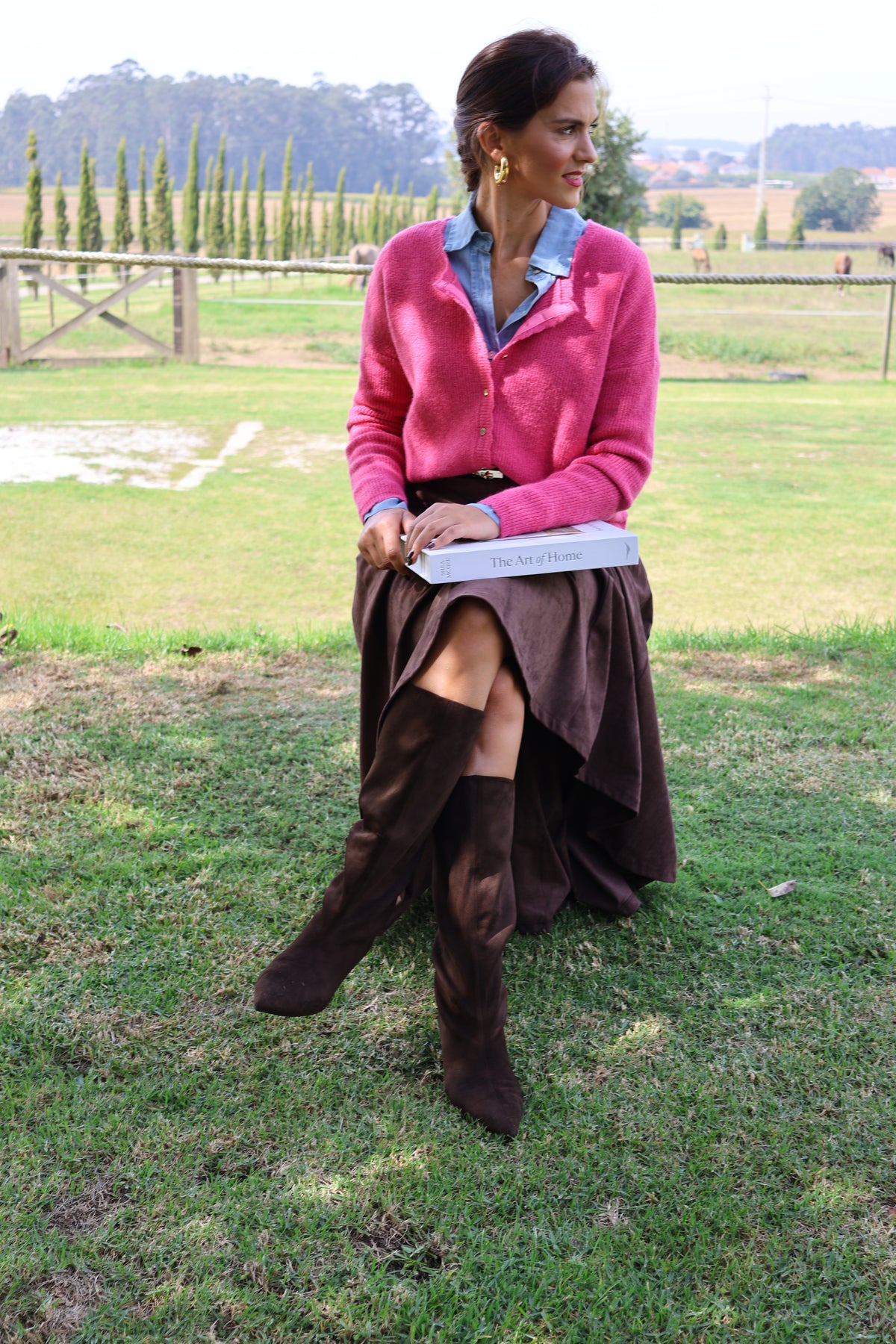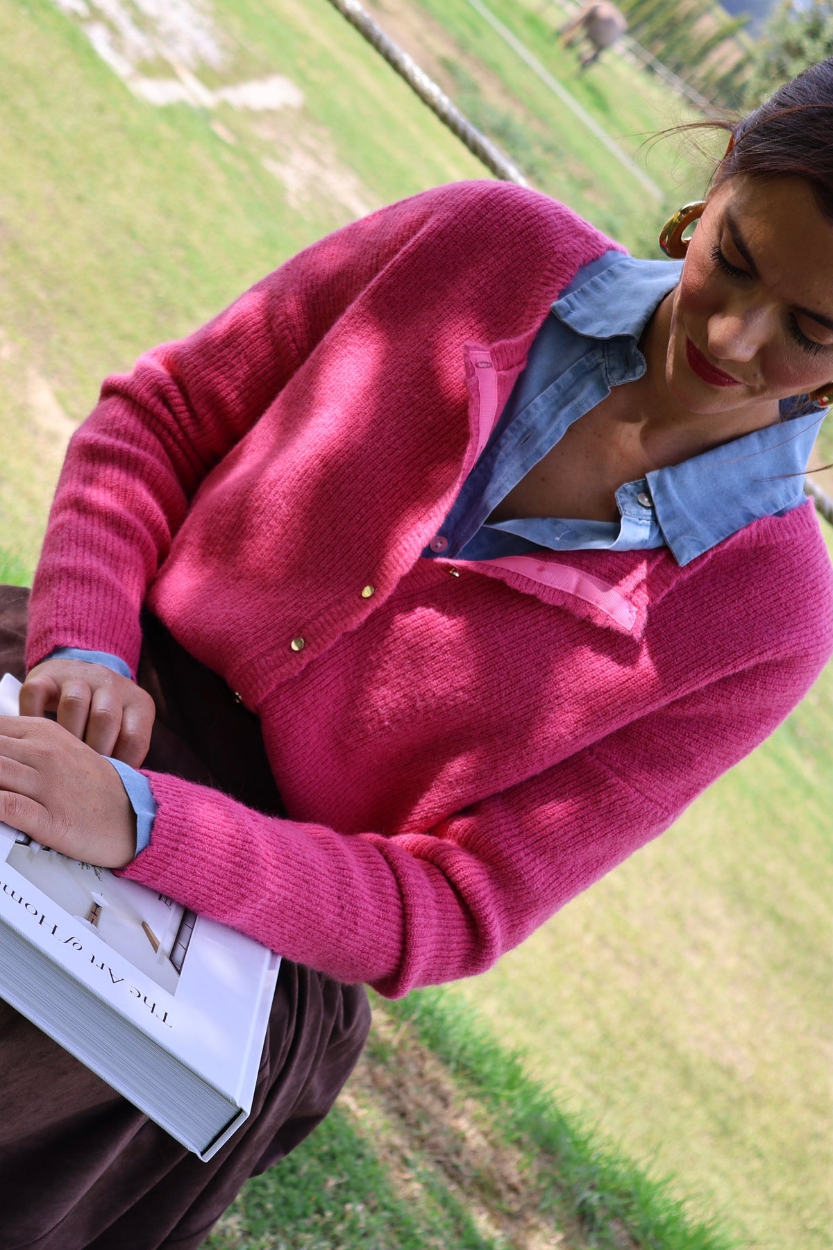 Casaco de manga comprida, em mistura de alpaca e lã, decote redondo, botões dourados, Fall-Winter 2025.