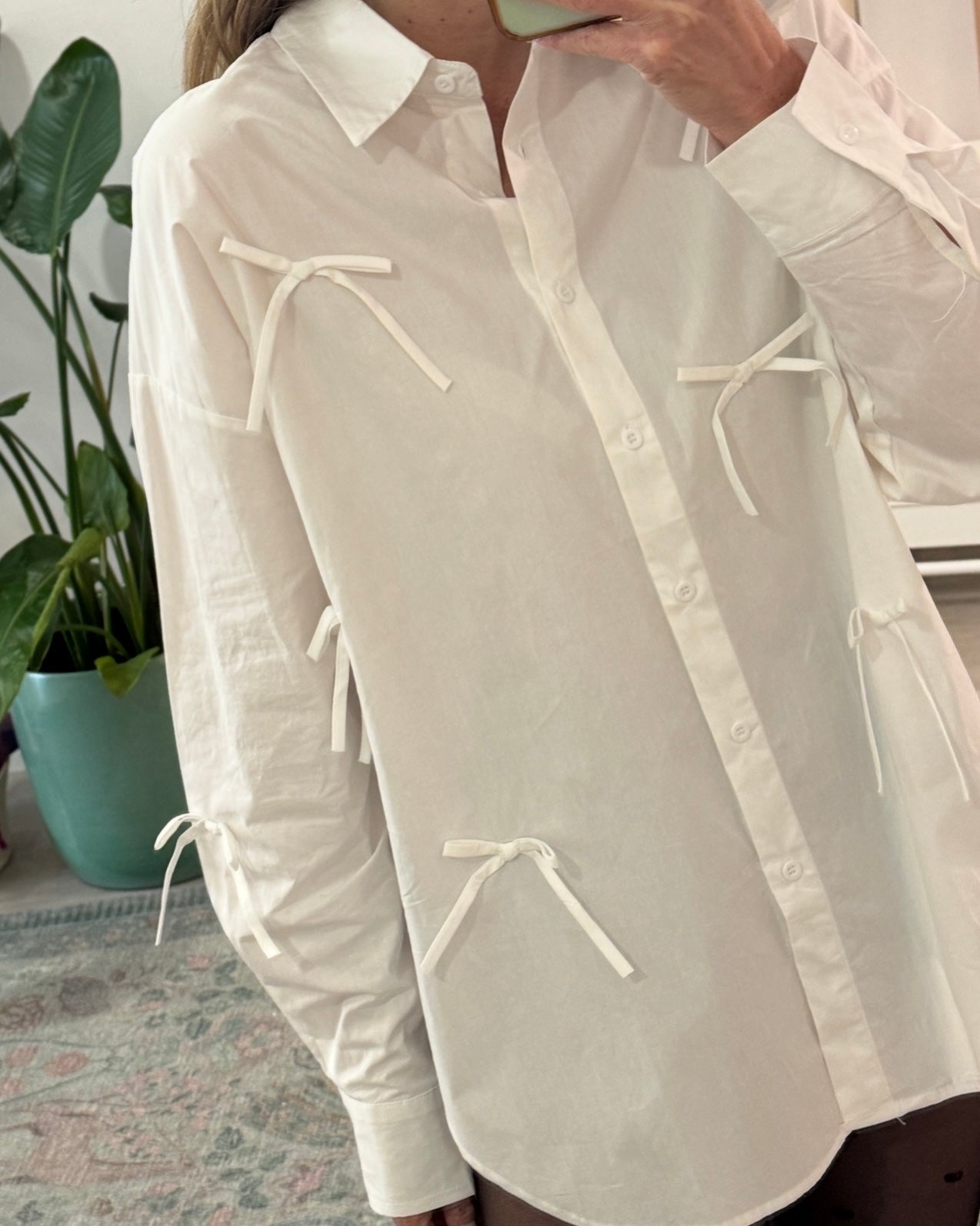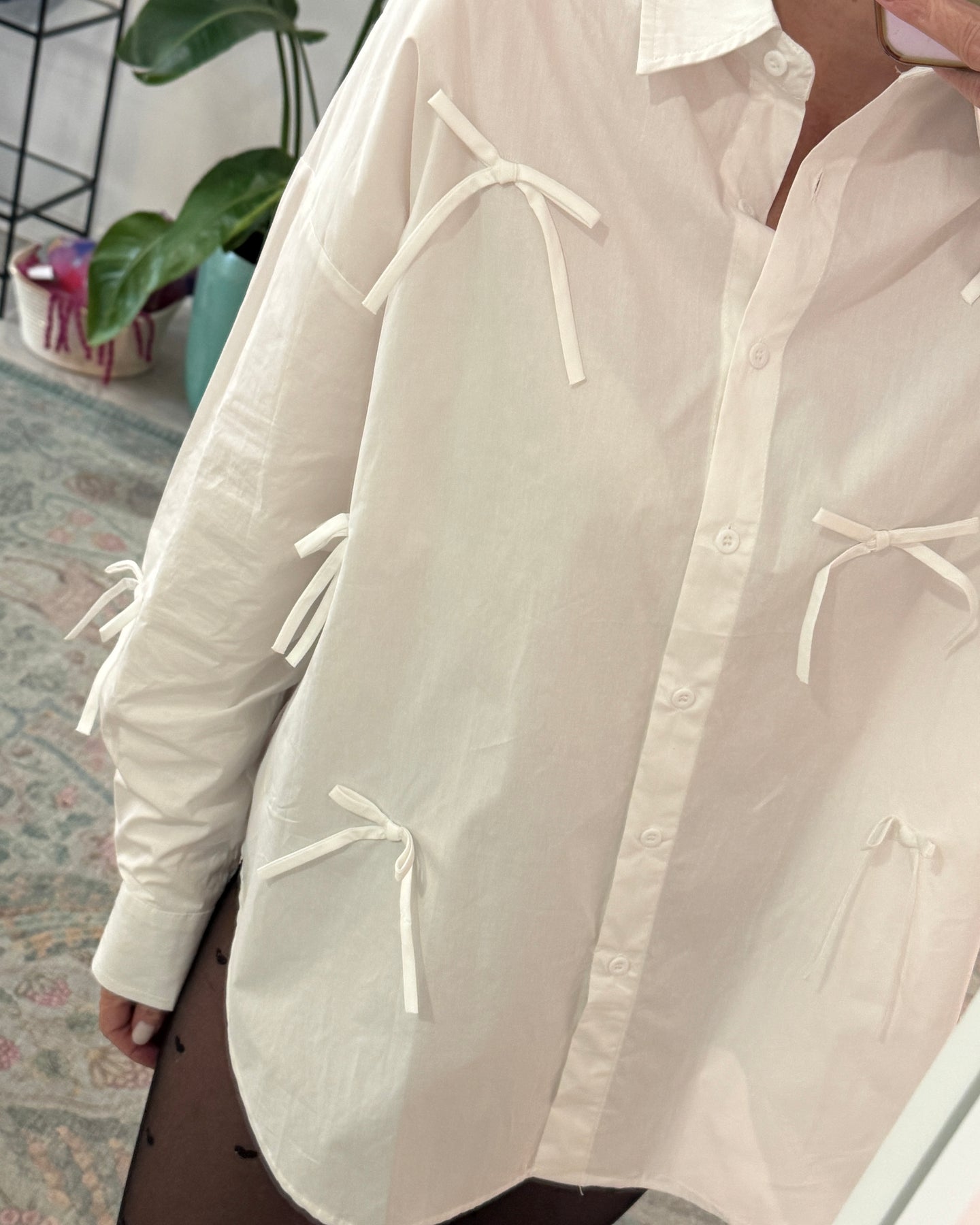 Camisa de manga comprida, em algodão, com aplicações laços e corte oversize, Nova Coleção Spring26.