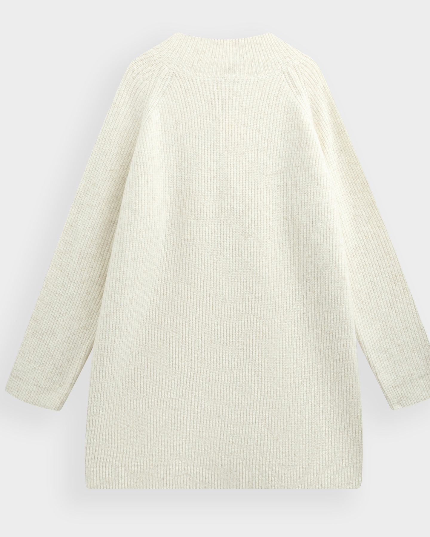 Descrição do produto; Vestido de malha canelada com gola alta. Corte reto, ligeiramente solto. Mangas raglan compridas. Comprimento até o meio da coxa, Coleção Fall-Winter25.