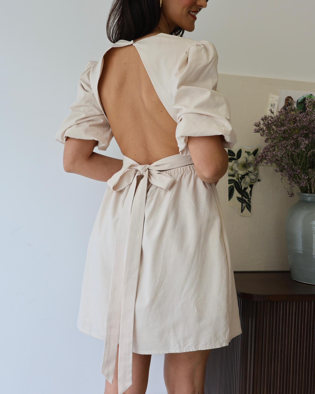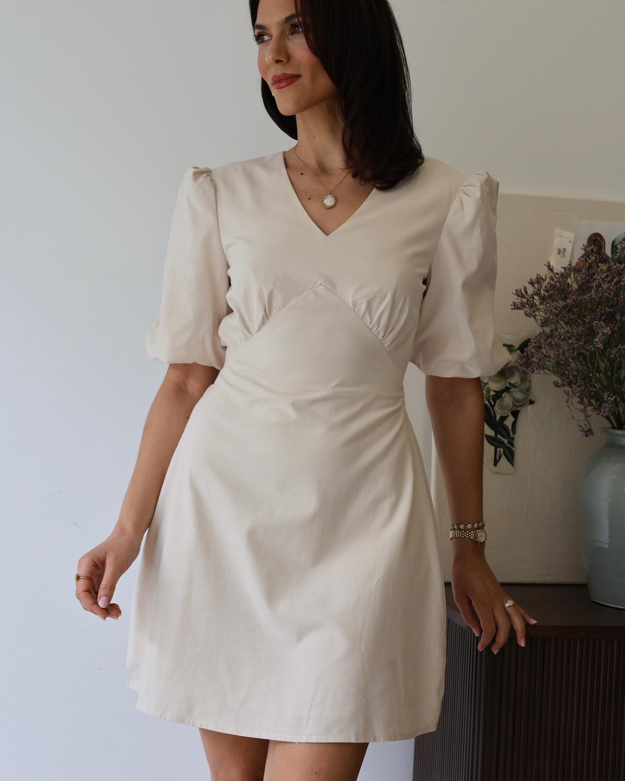 Vestido con estampado, manga larga globo, cintura definida, estilo romántico y elegante, Colección Primavera 2026.