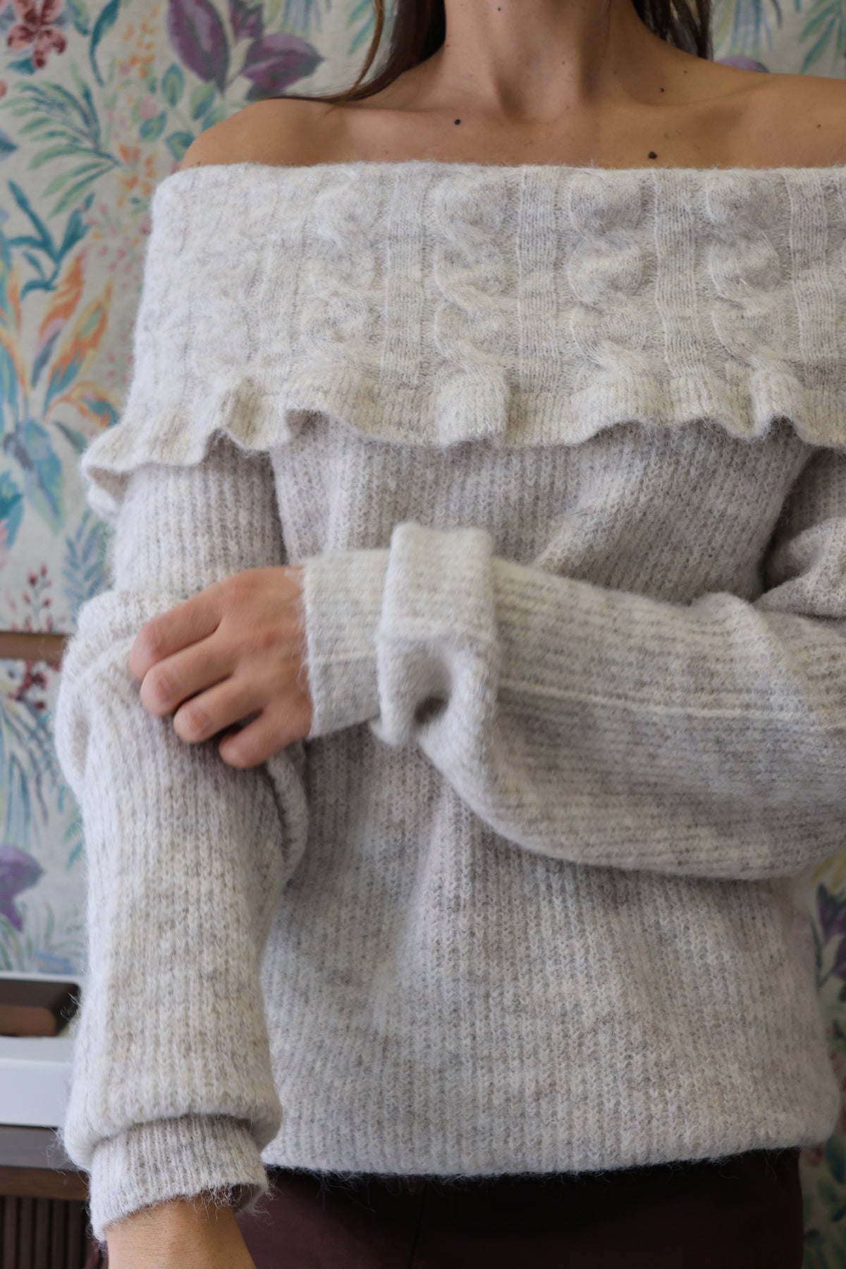 Descripción del producto. Camisa de manga larga con cuello caído que llega hasta los hombros, detalle trenzado, Colección Otoño-Invierno 25.