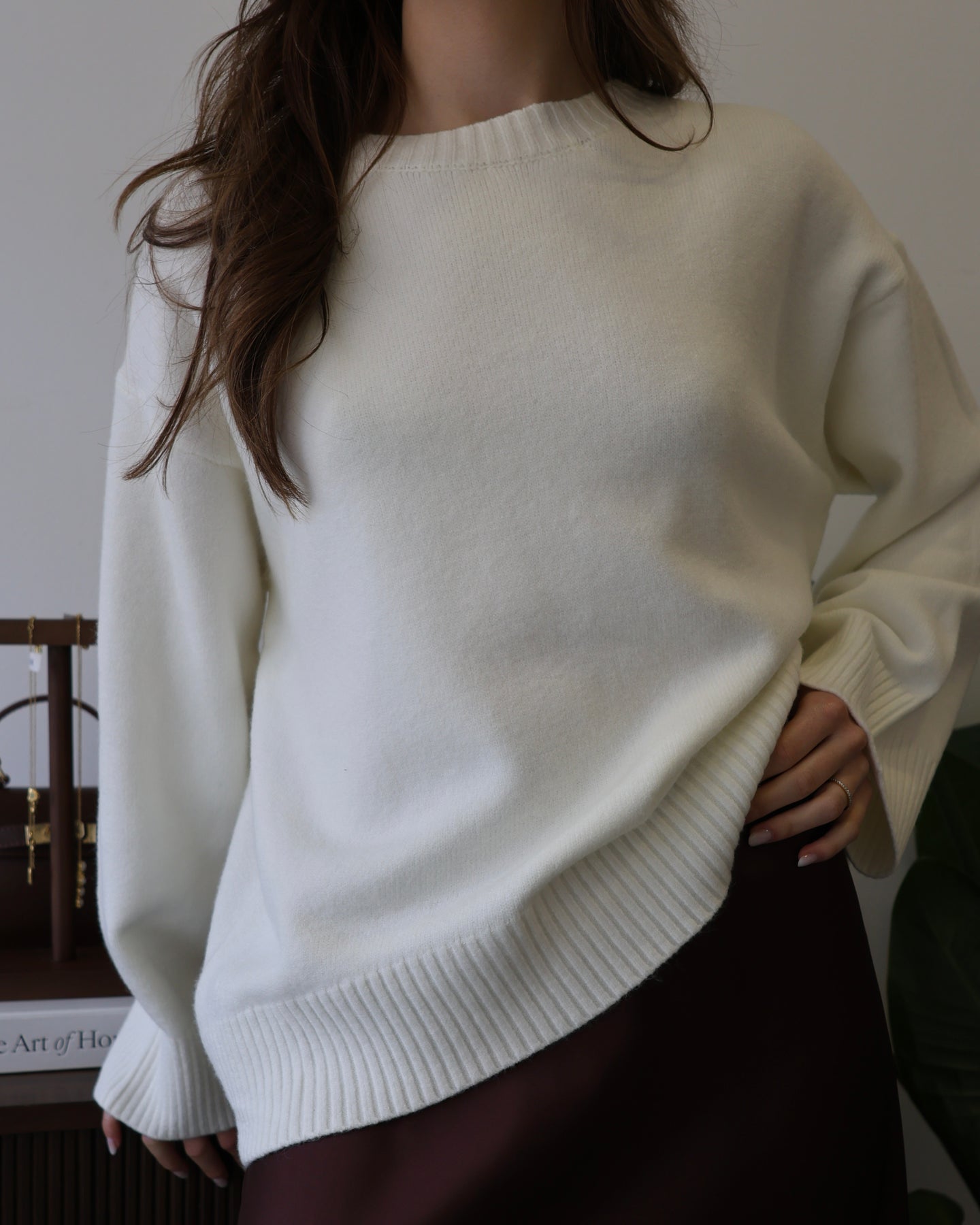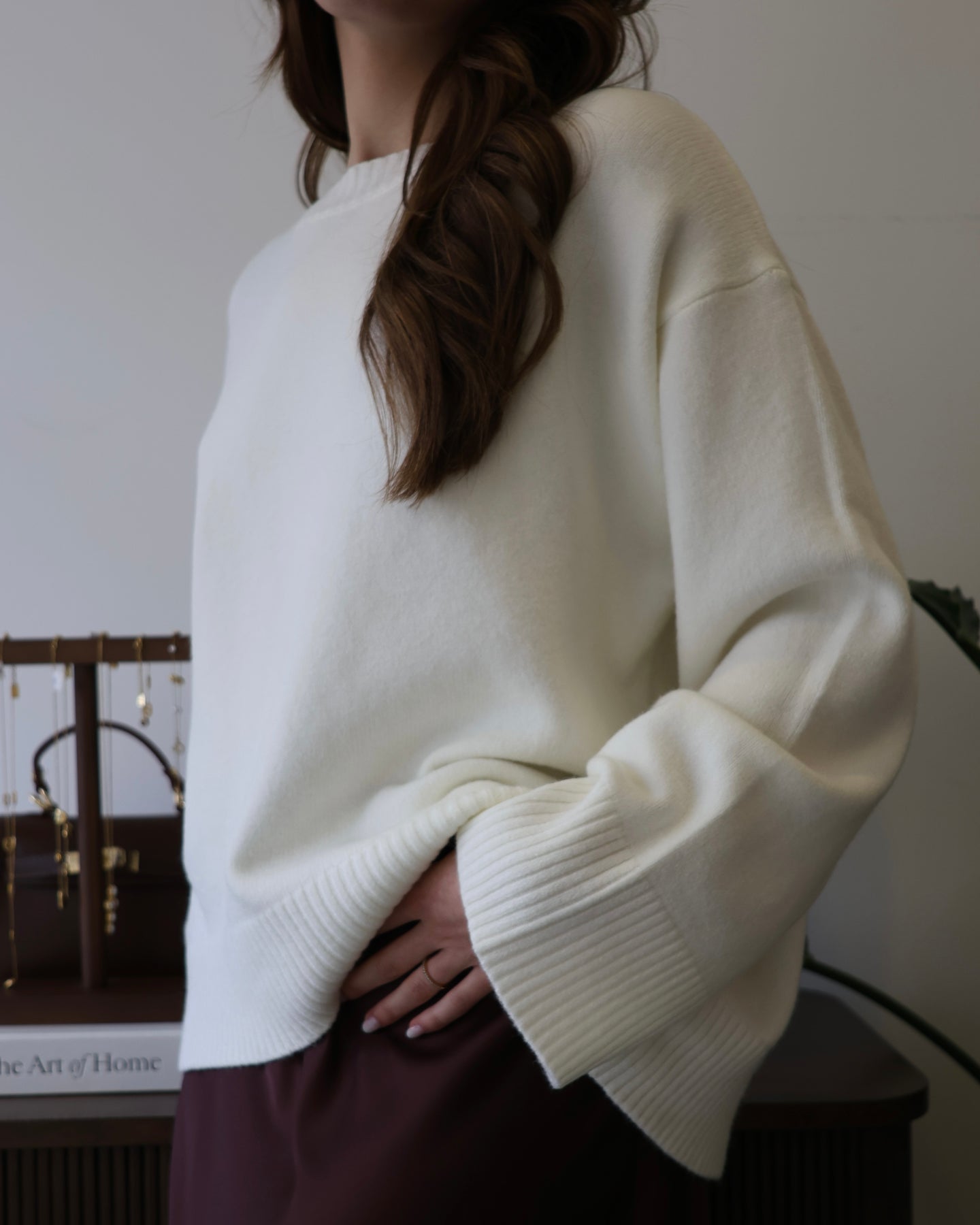 Descrição do produto. Camisola de manga comprida, em malha com gola redonda,  Coleção Fall-Winter25.