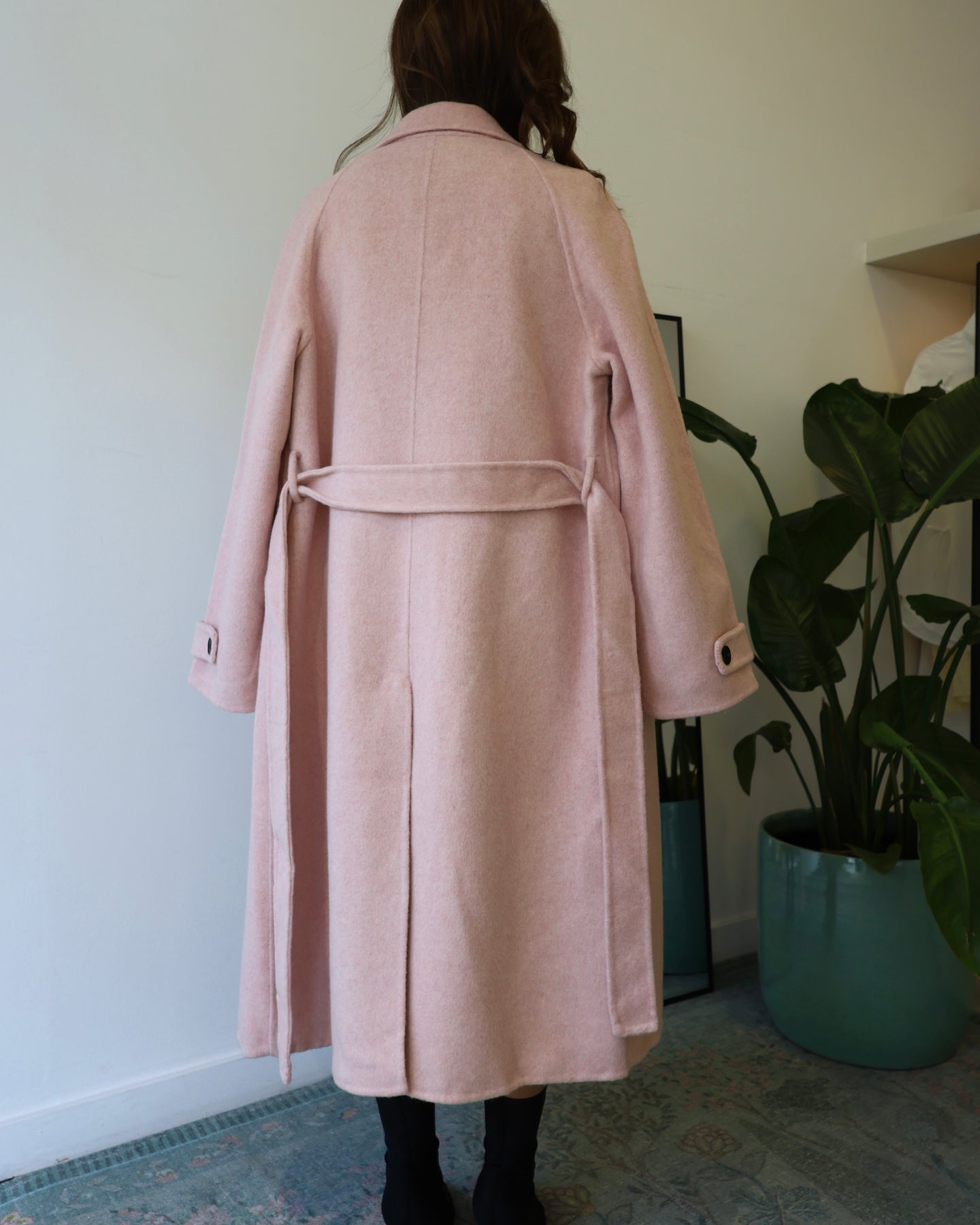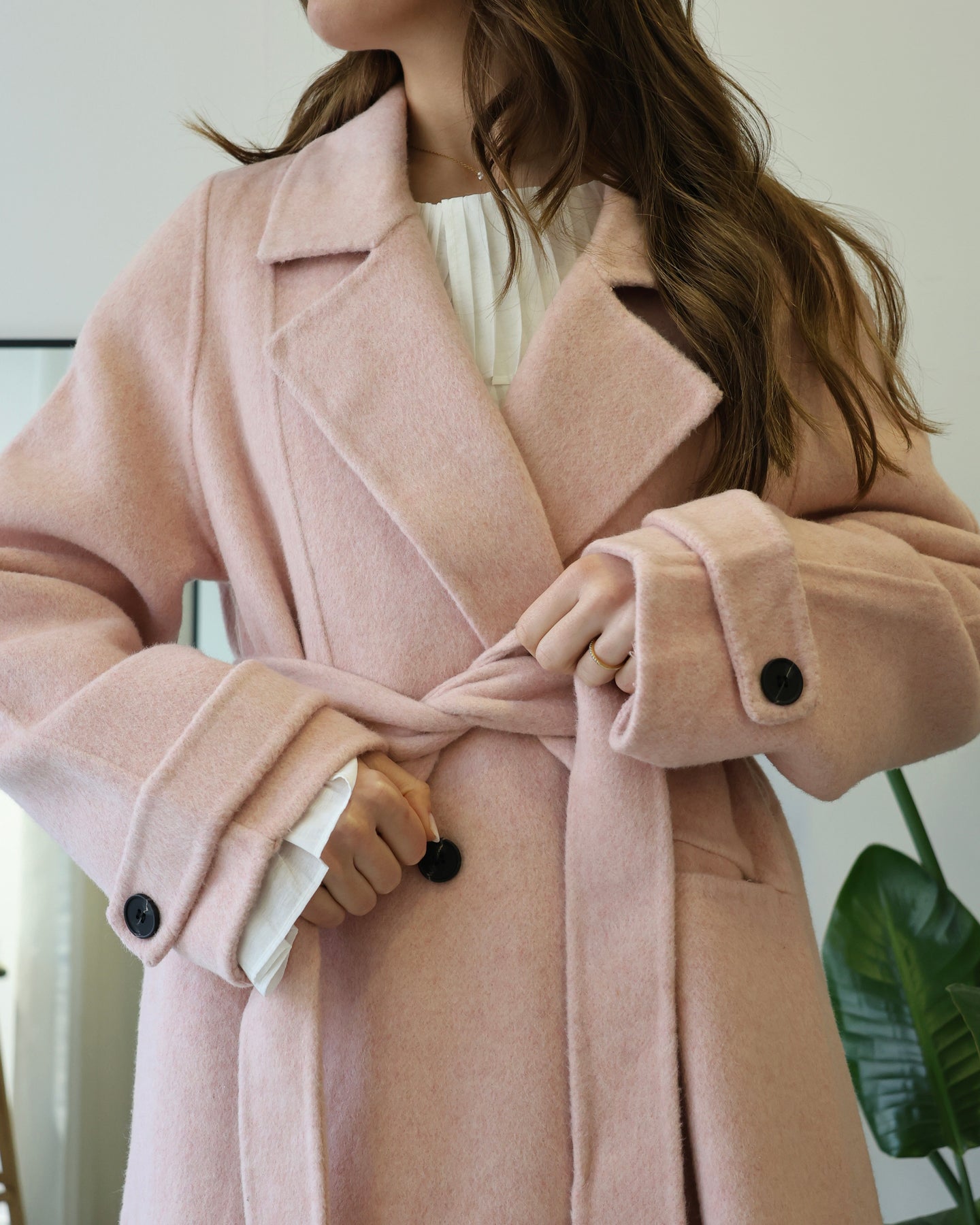 Sobretudo longo, composto por lã, alta quantidade, bolsos frontais, cinto para amarrar na cintura, muito quentinho, Coleção Fall-Winter25.