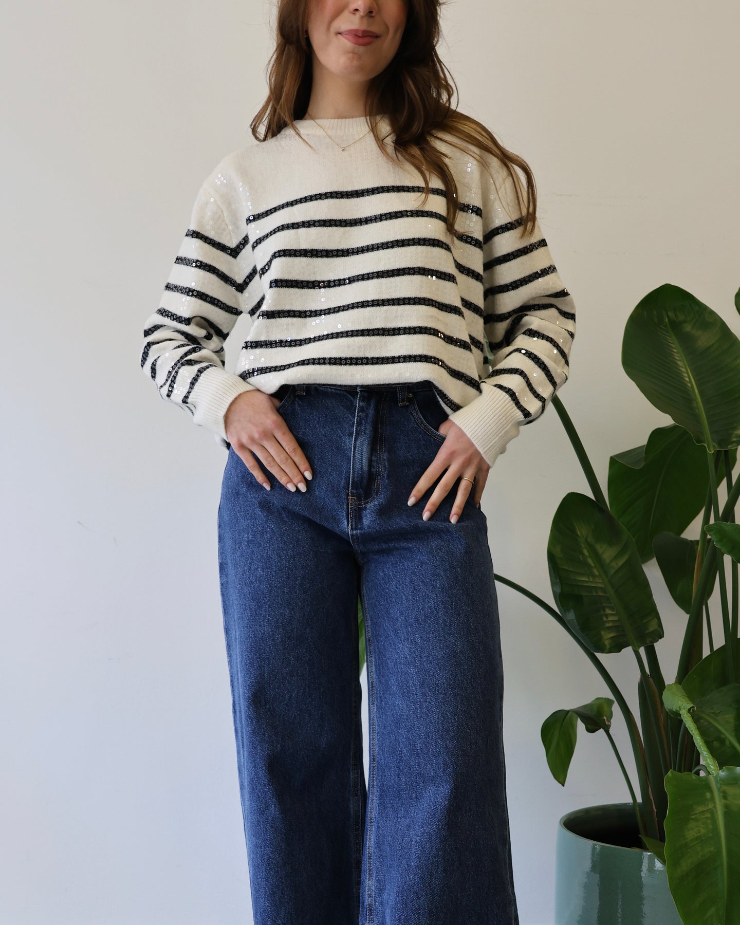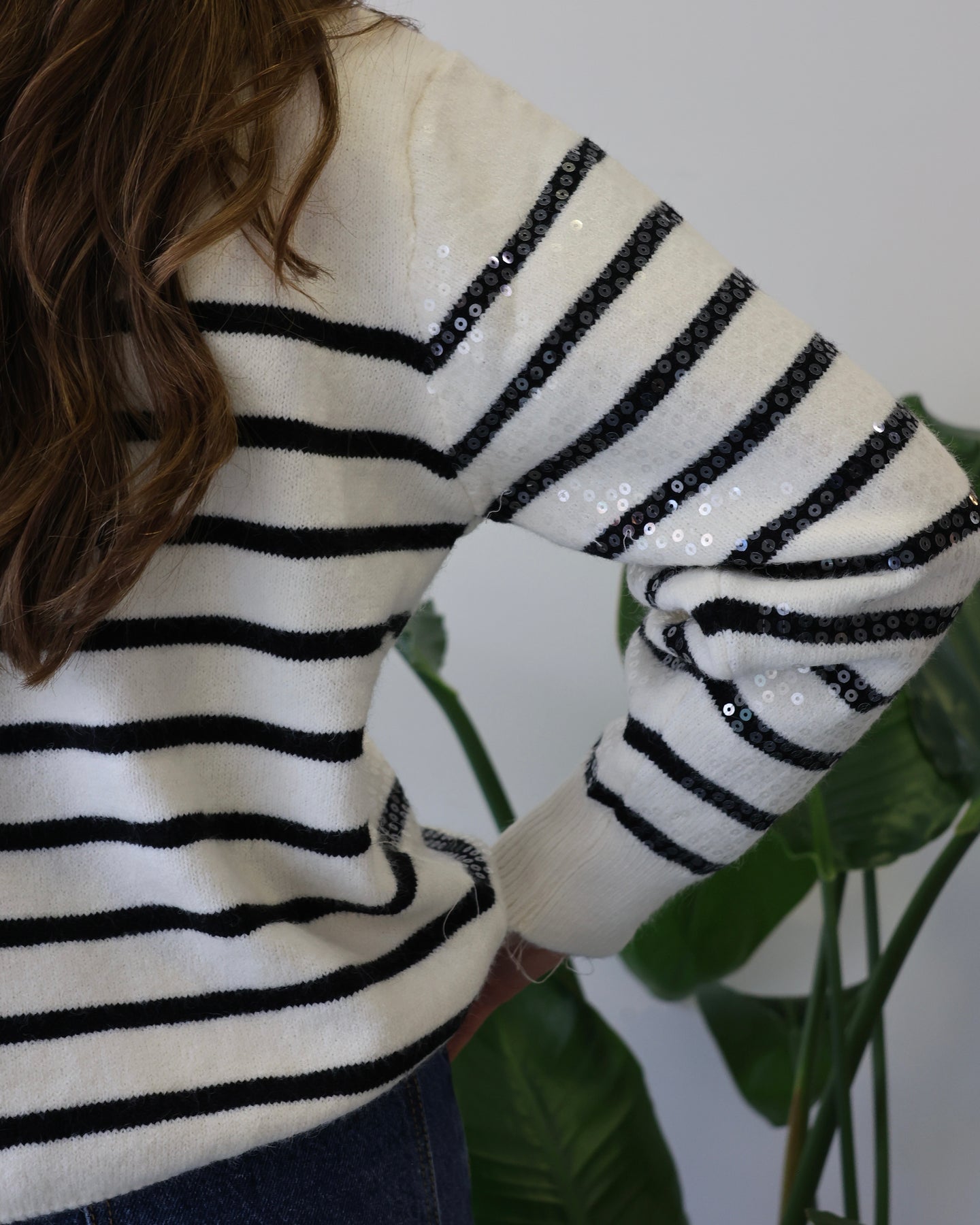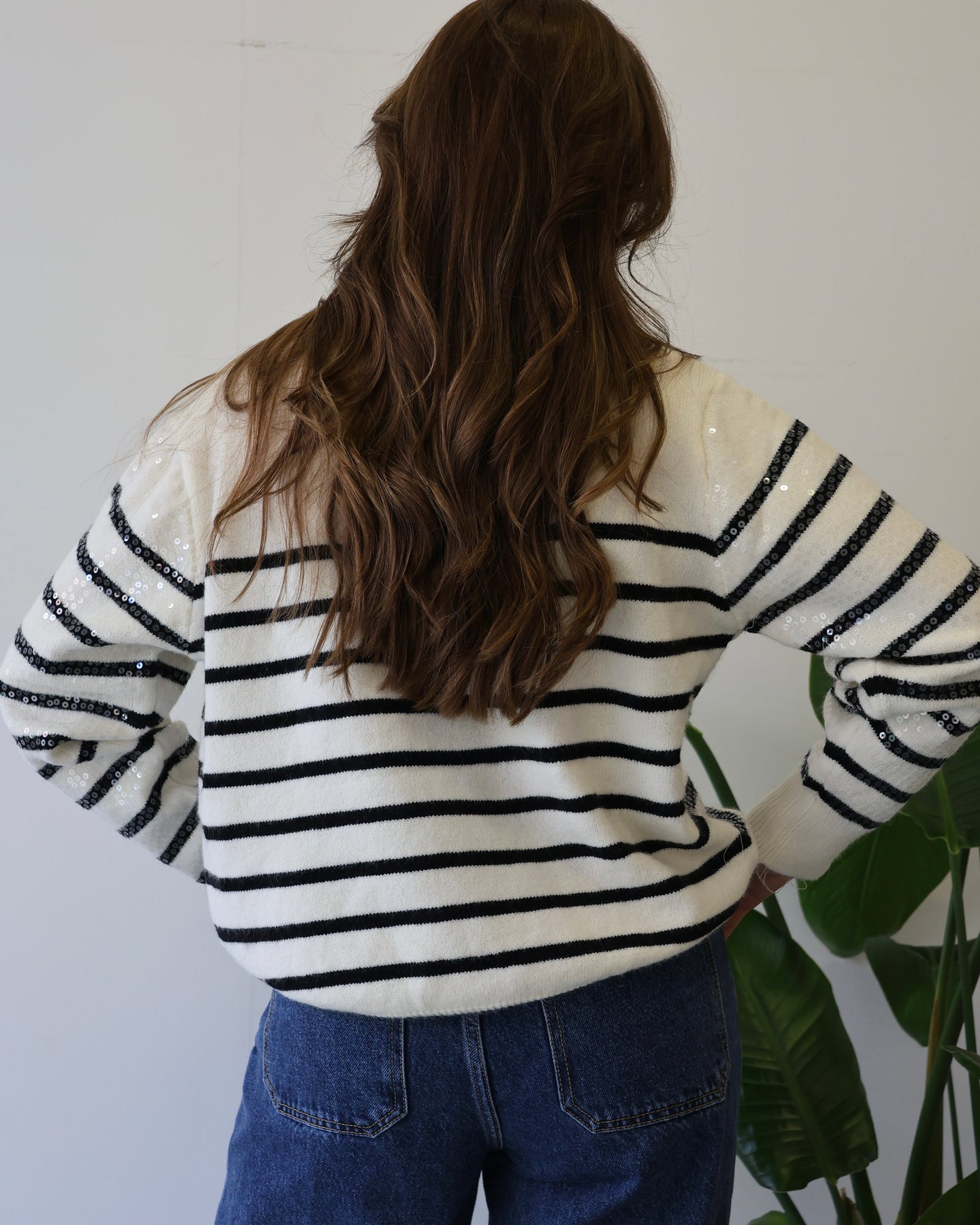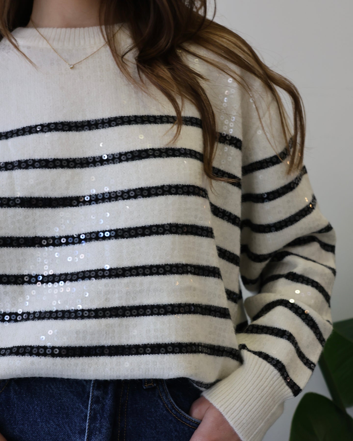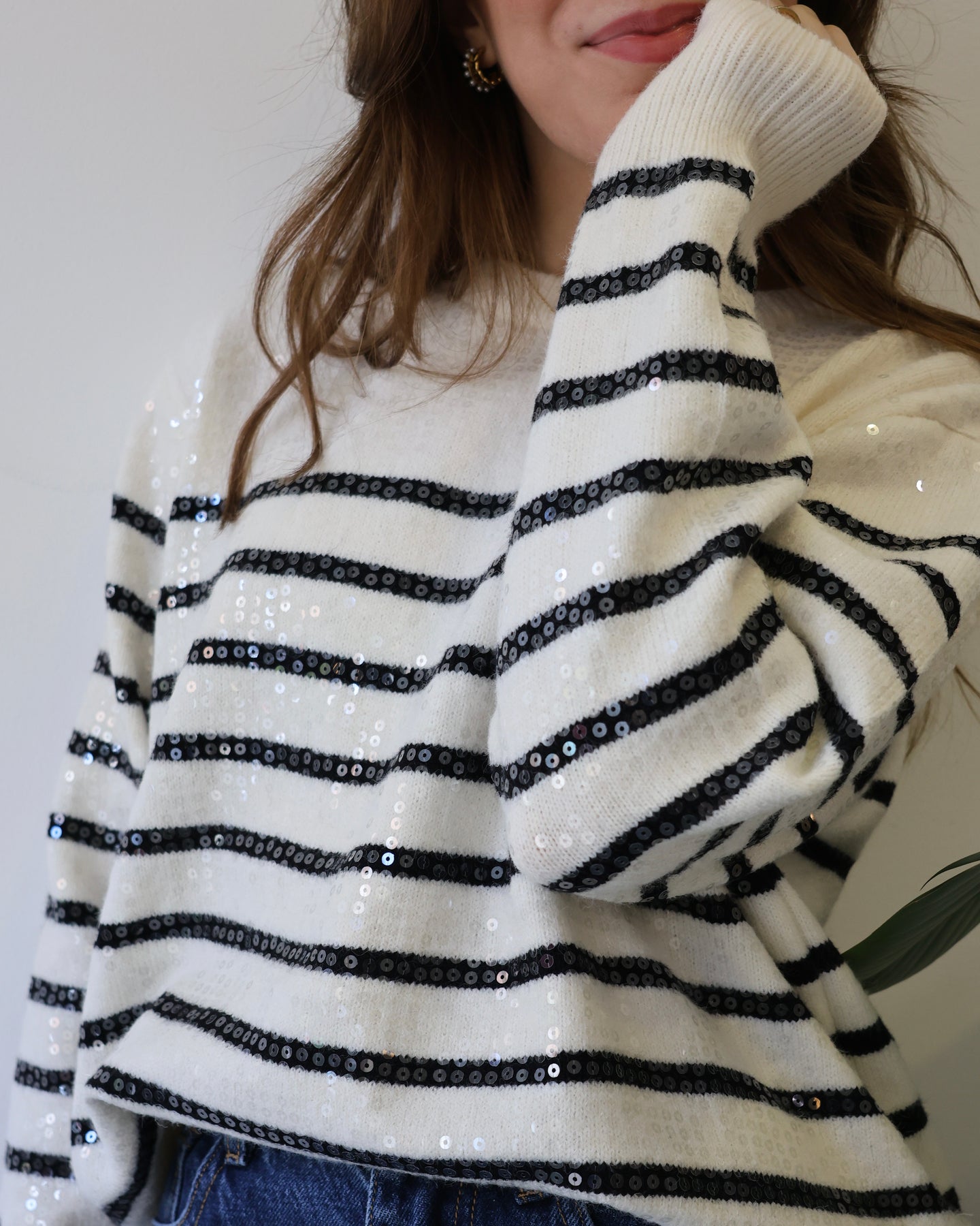 Camisola em malha listas com lantejoulas. Nova Coleção Spring26.