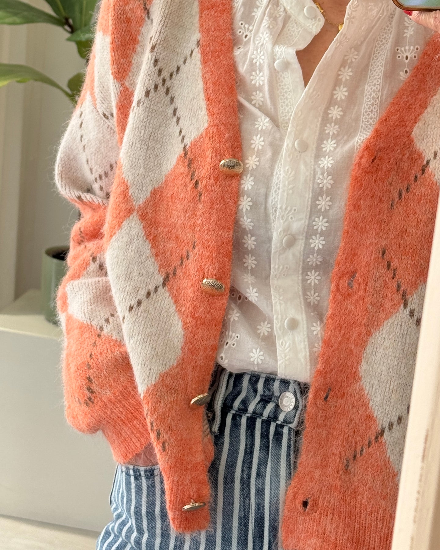 Casaco decore em V losango com botões dourados, Nova Coleção Spring26.