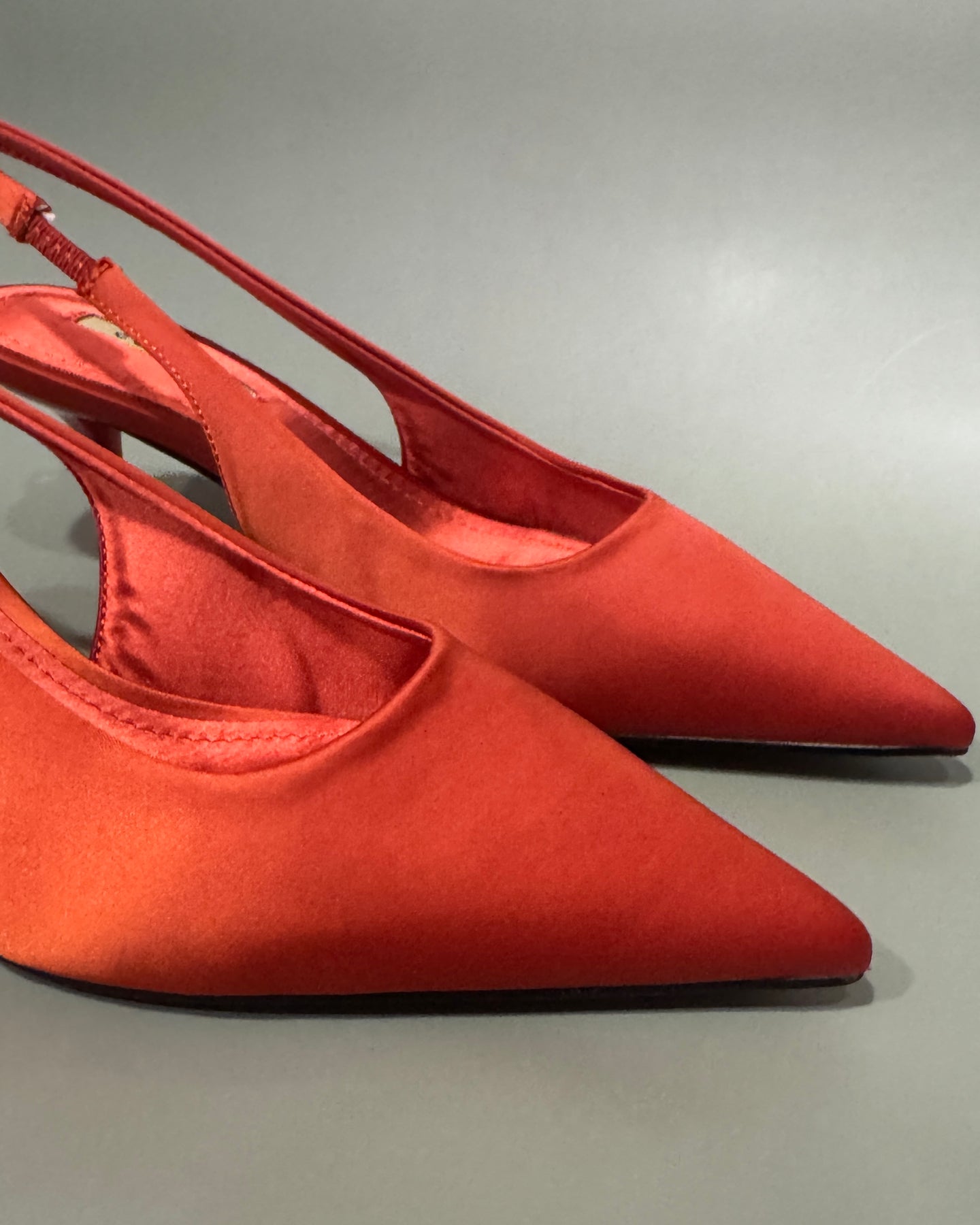 Sapato Stiletto em bico, tecido acetinado, tira ajustável, Spring-Summer 2026.
