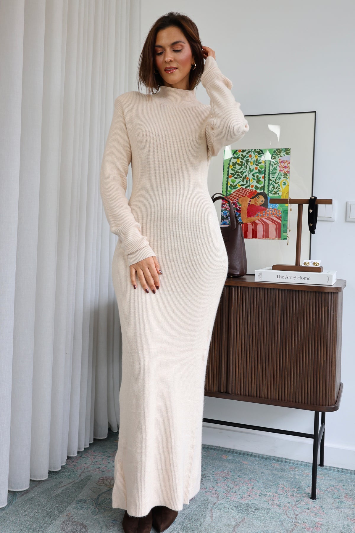 Vestido longo em malha canelada com ombreiras e pequena racha atrás, é só maravilhoso. Nova Coleção Fall - Winter 25.